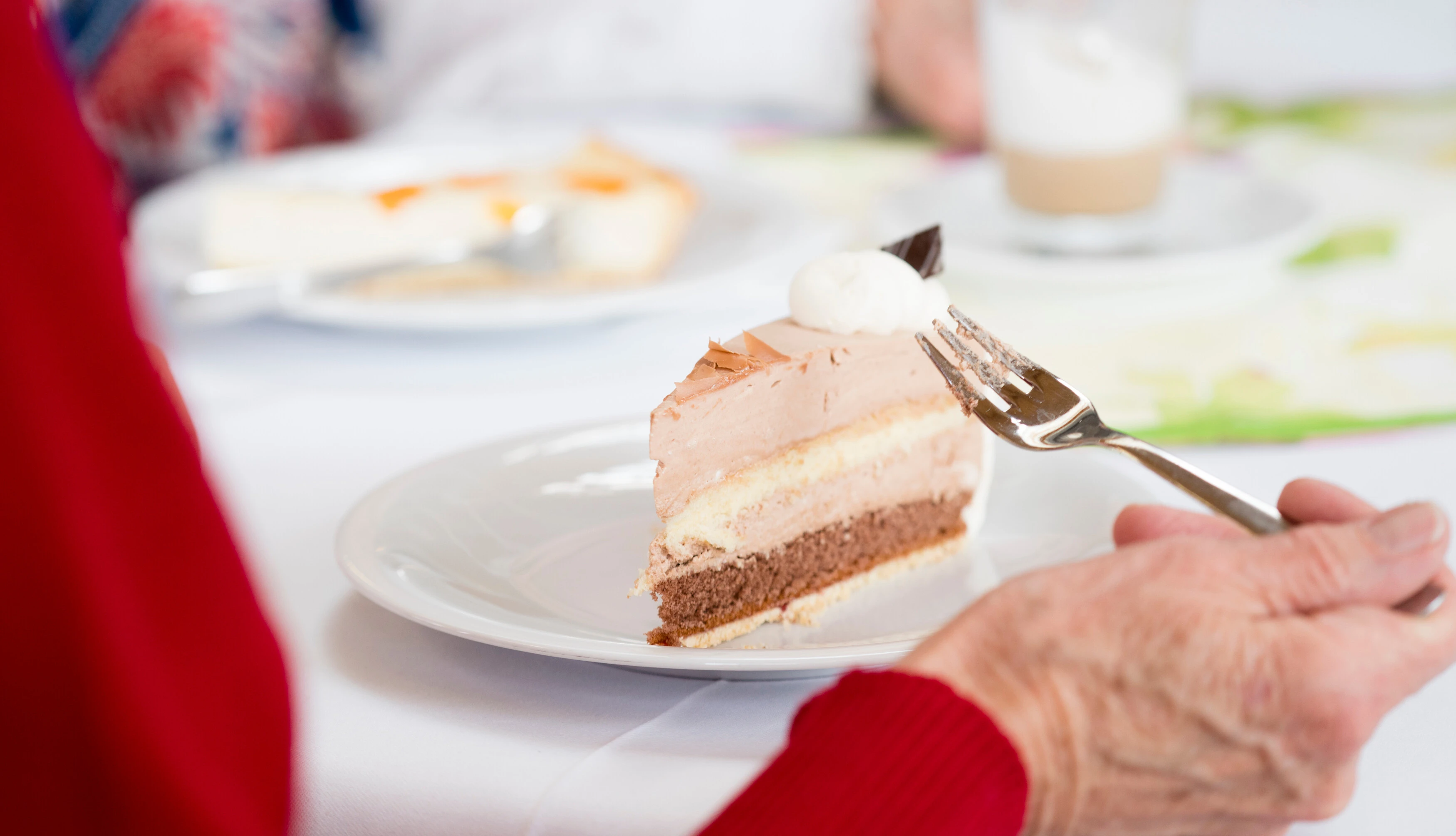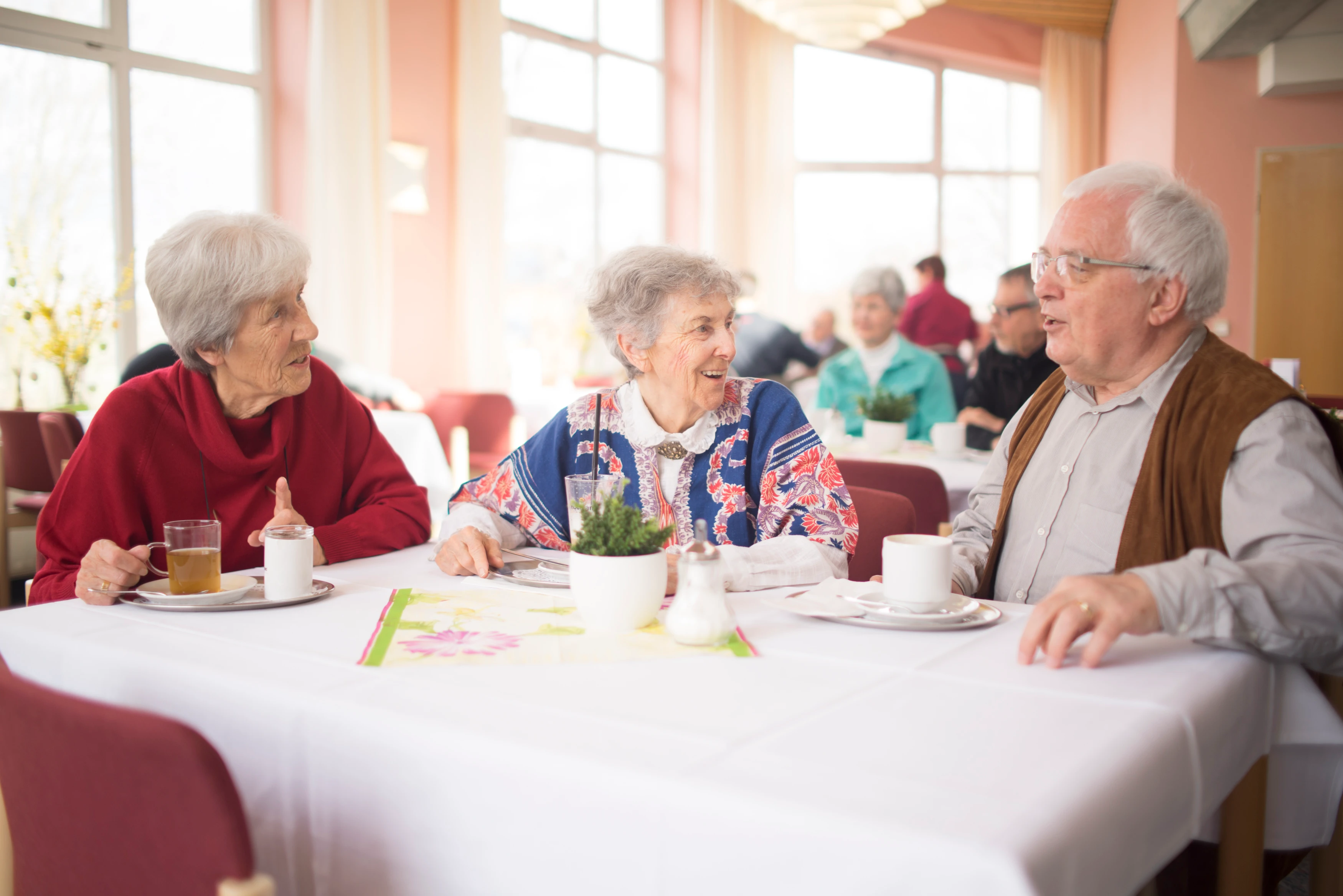 In unserem täglich geöffneten und liebevoll gestalteten Café können Bewohner und Bewohnerinnen mit ihren Angehörigen und Freunden – auch externe Besucher:innen sind willkommen – genussvolle und kurzweilige Nachmittage verbringen, im Sommer selbstverständlich auch auf der sonnigen Gartenterrasse neben dem Haupteingang.