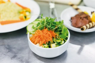 Eine schonende Zubereitung der Mahlzeiten ist uns wichtig, auf die Verwendung von Fertigprodukten verzichten wir. Täglich stehen ein vegetarisches Gericht und mehrfach wöchentlich auch Fleisch- und Fischgerichte zur Auswahl. Die Erfüllung von Sonderwünschen, z.B. Diätkost, ist nach Absprache möglich.