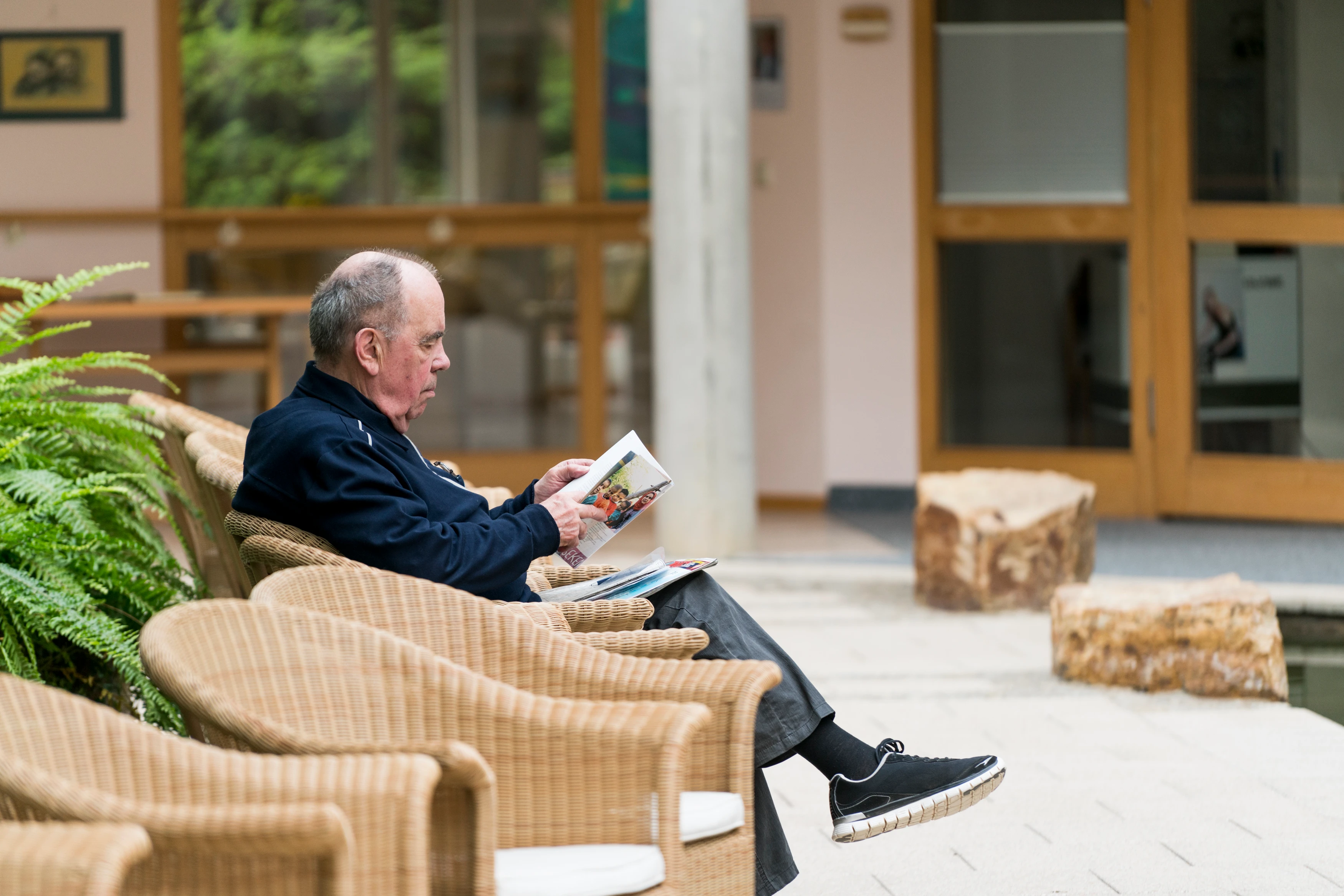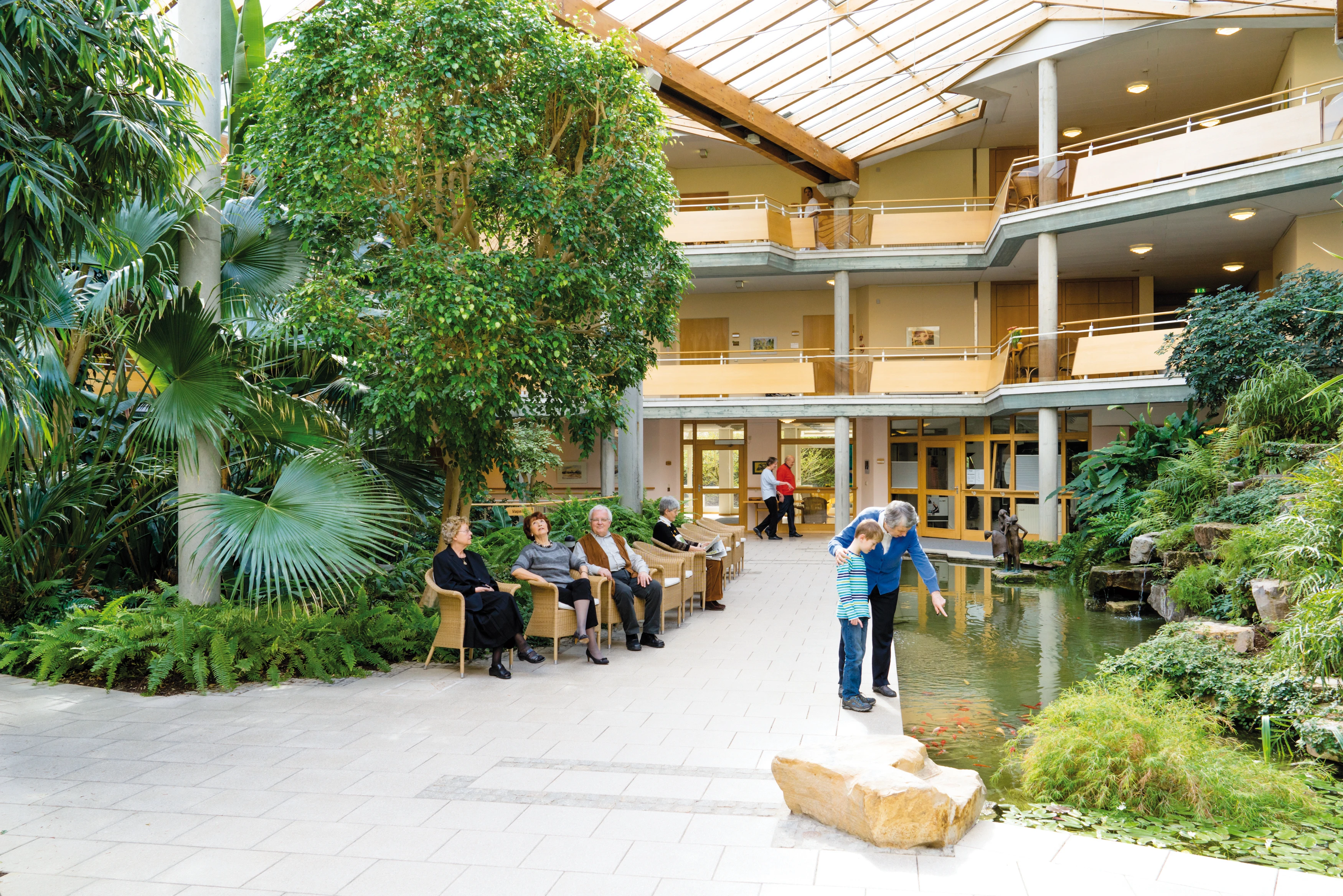 - Das gesamte Nikolaus-Cusanus-Haus ist barrierefrei, sein Wegesystem grundsätzlich so angelegt, dass es nur Abzweigungen und Rundgänge gibt.
