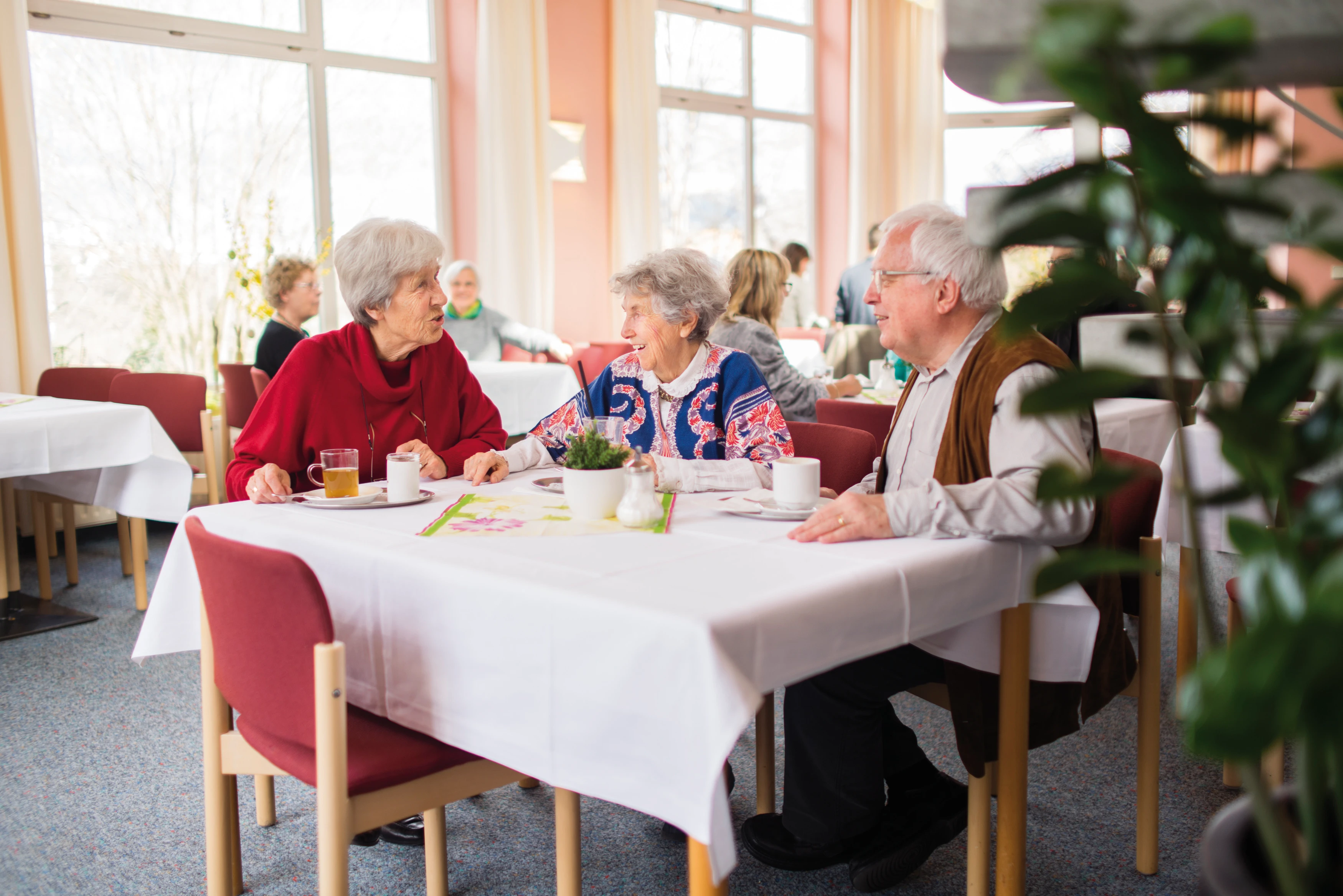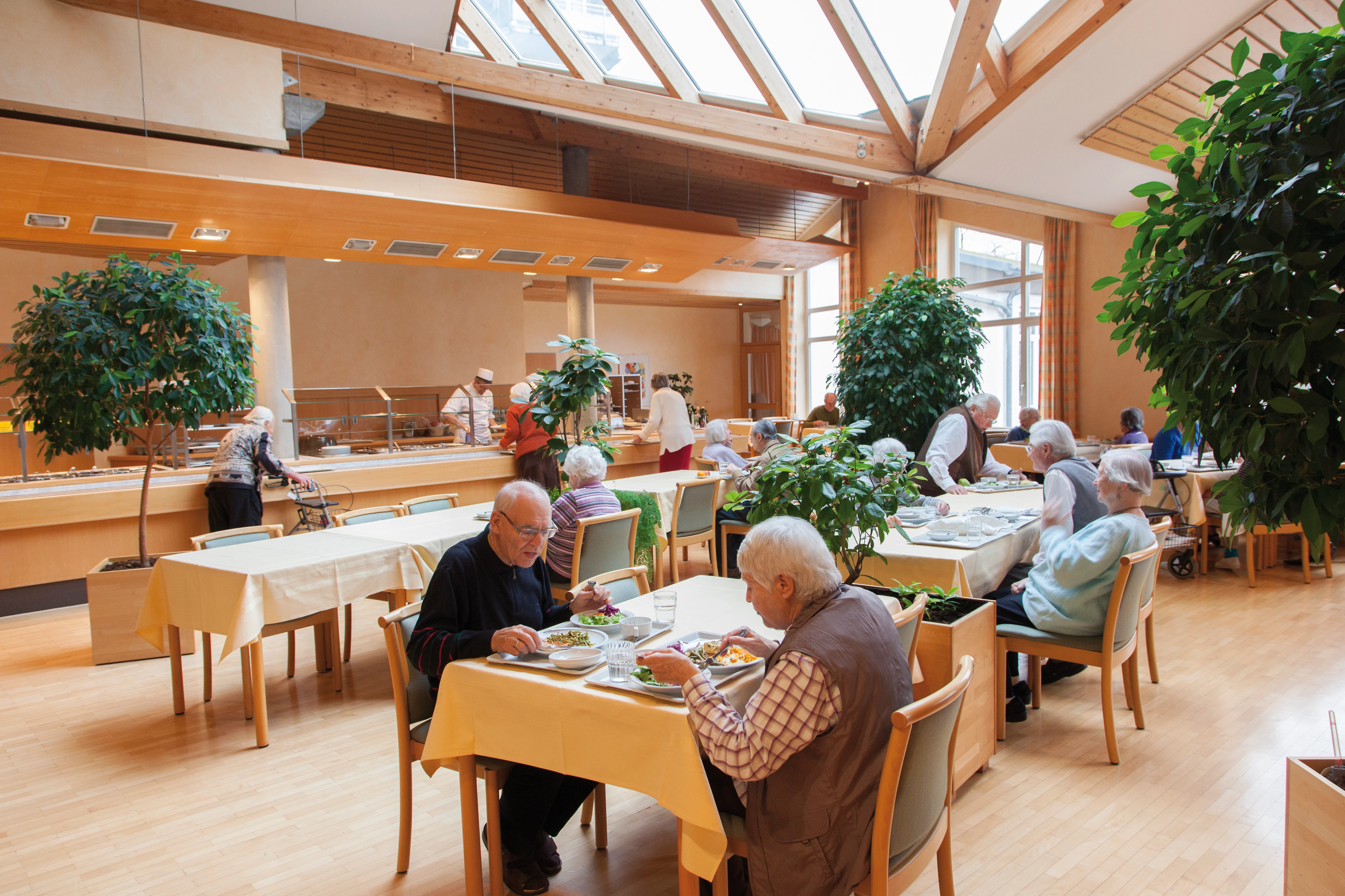 Wie muss ein Haus innen, wie muss es außen gestaltet sein, damit sich darin eine funktionierende Gemeinschaft zwischen rüstigen und pflegebedürftigen Menschen im Alter bilden kann? Das 1992 in einer reizvollen Landschaft in Stuttgarts Süden erbaute Nikolaus-Cusanus-Haus gibt eine überzeugende Antwort: Den Mittelpunkt des barrierefreien Gebäudes bildet der lichtdurchflutete, begrünte und von Bachläufen durchzogene Innenhof. Dieses Atrium dient als zentraler Ort der Kommunikation. Von hier aus kann man bequem und schnell alle wichtigen gemeinschaftlichen Einrichtungen erreichen: